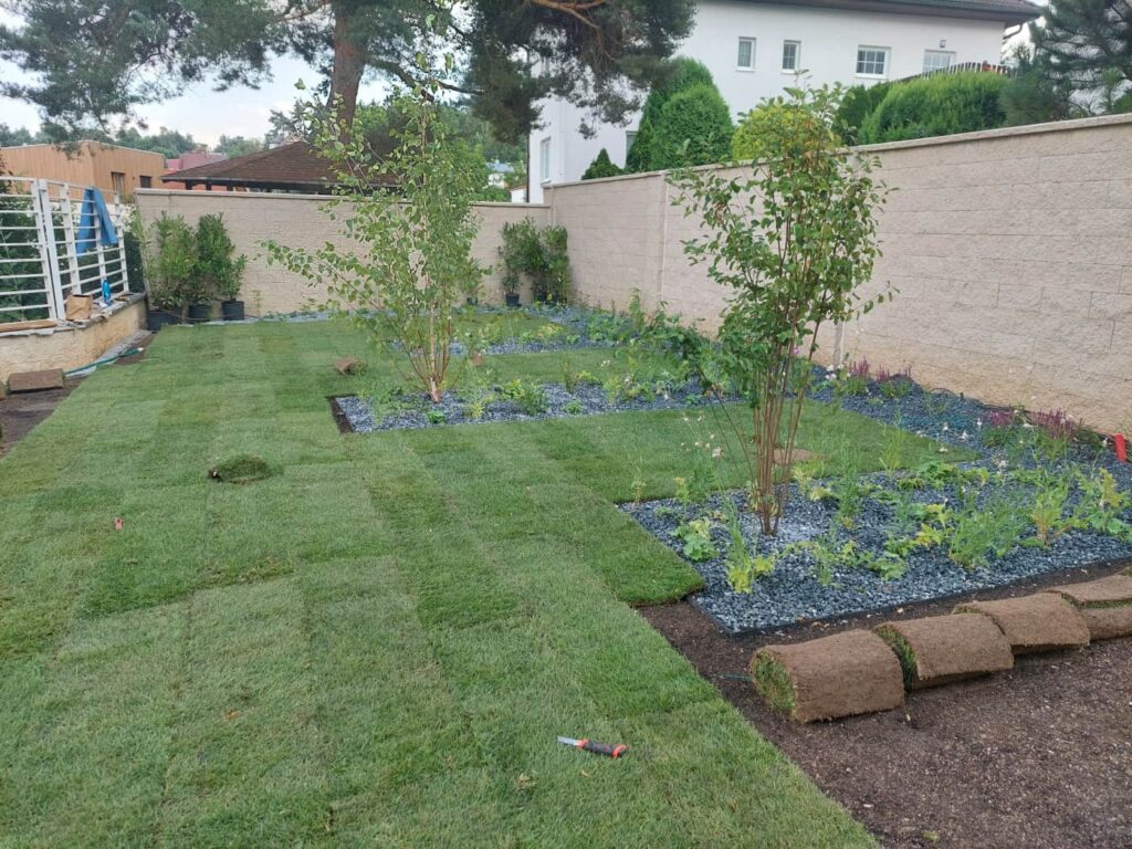 Postaráme se o kompletní položení travního koberce, které zahrnuje odstranění staré vegetace, srovnání terénu a úprava půdy až po precizní rozložení a spojení jednotlivých rolí.